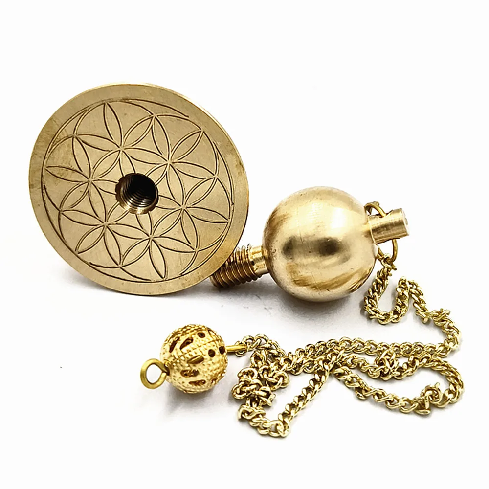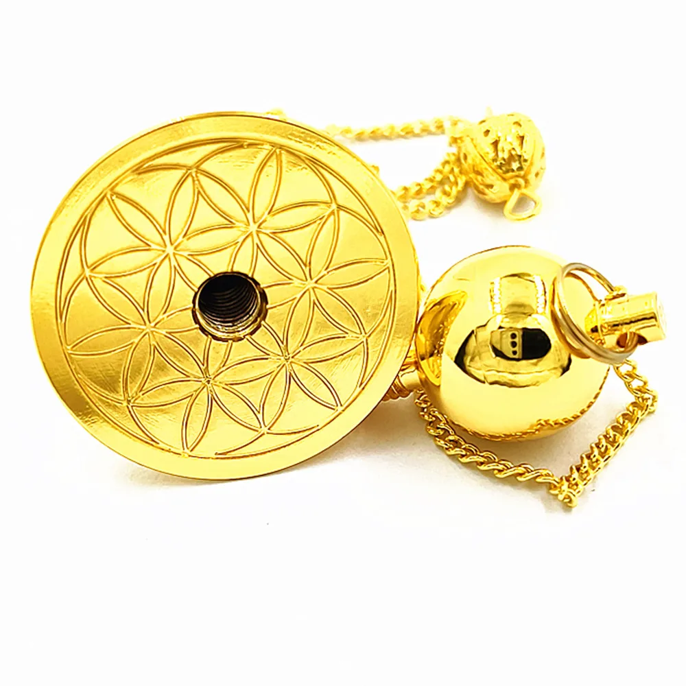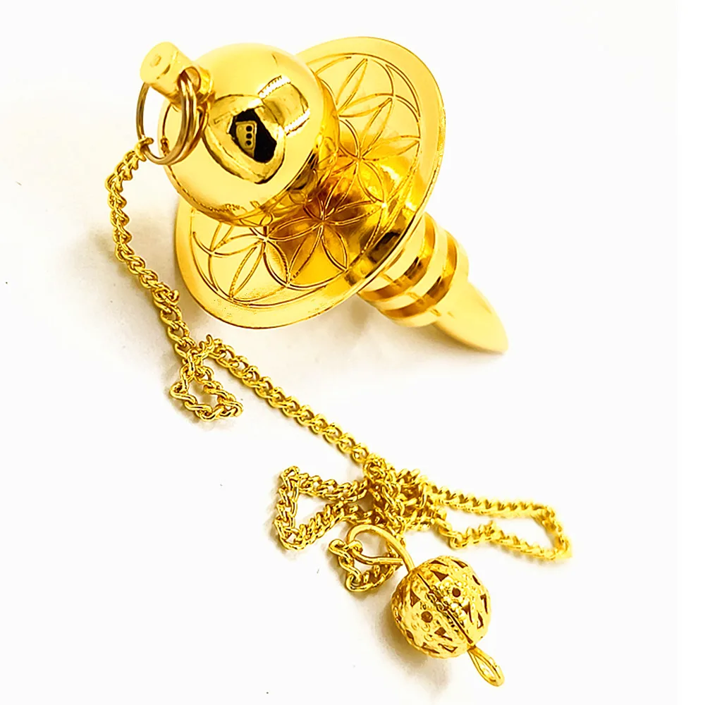 Flower of Life Gold plated Brass Pendulum for Dowsing Meatl Charms Chakra Amule
