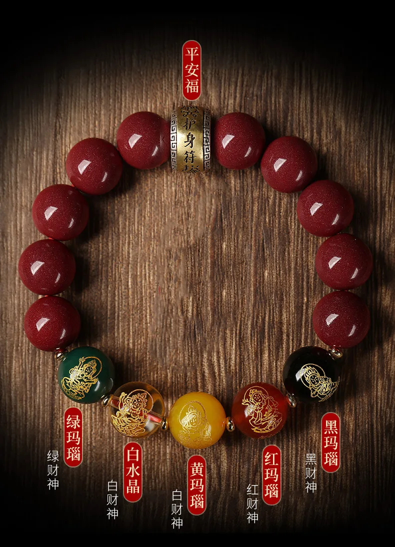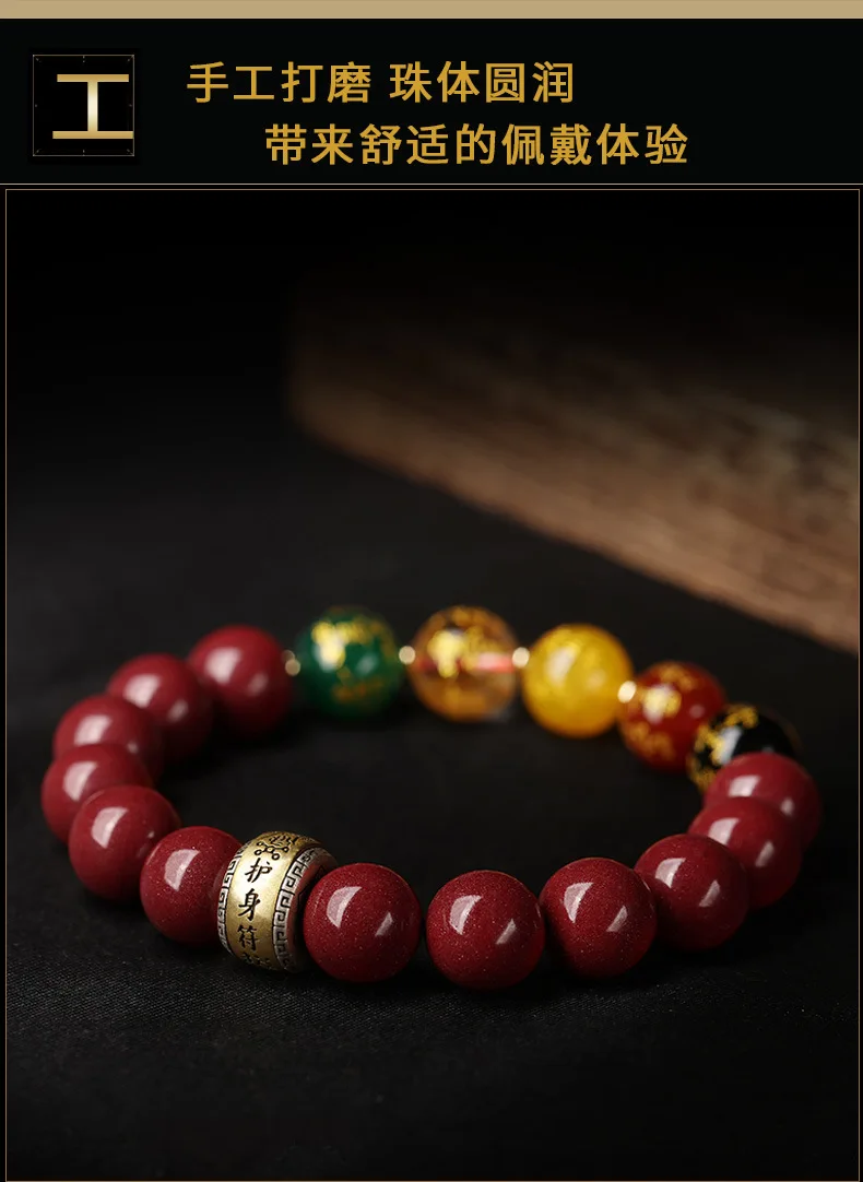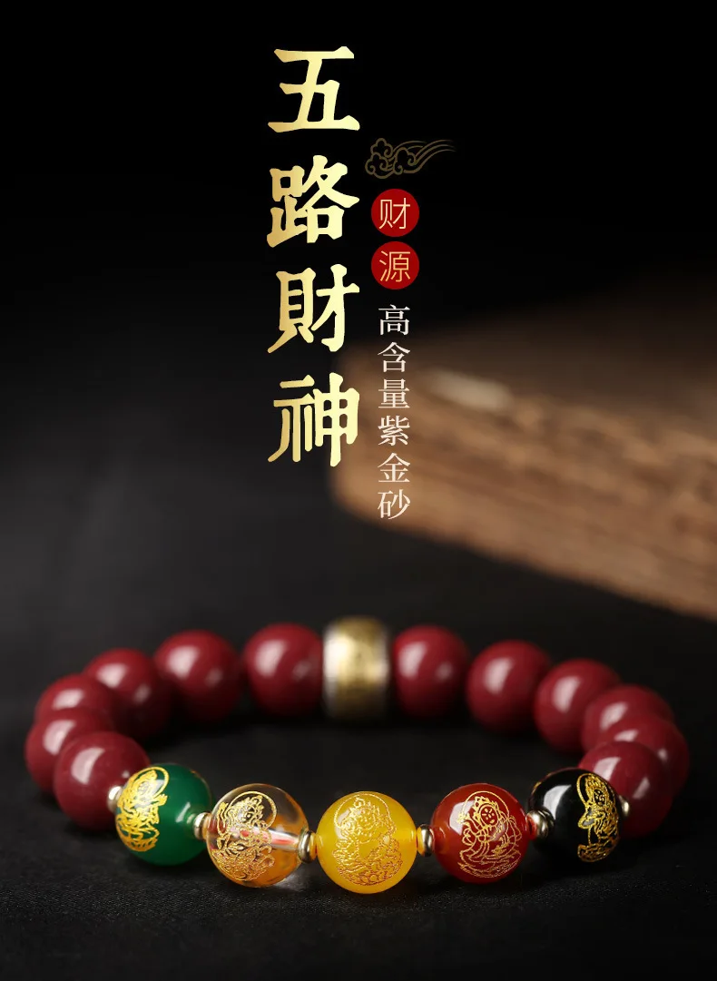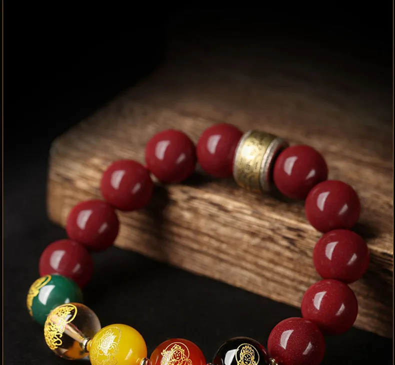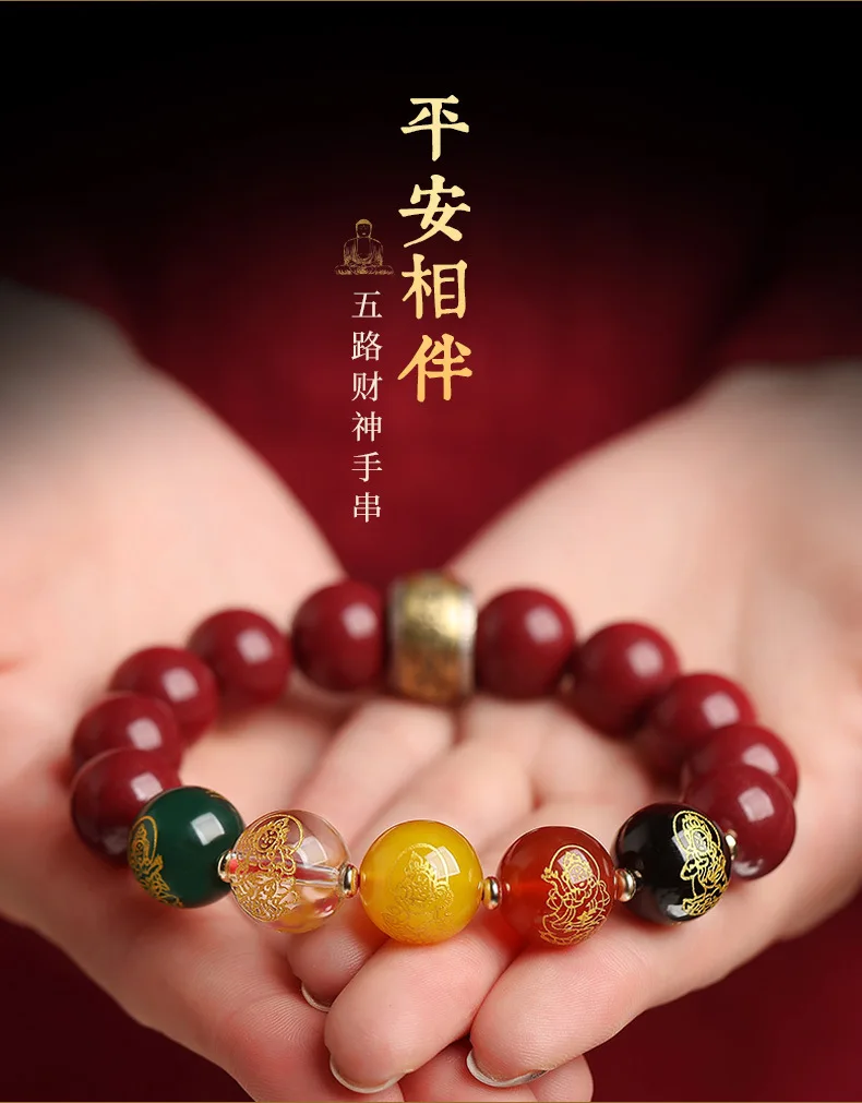 Simplicity S925 Silver Amulet Raw Cinnabar Men's and Women's Bracelet Five Way