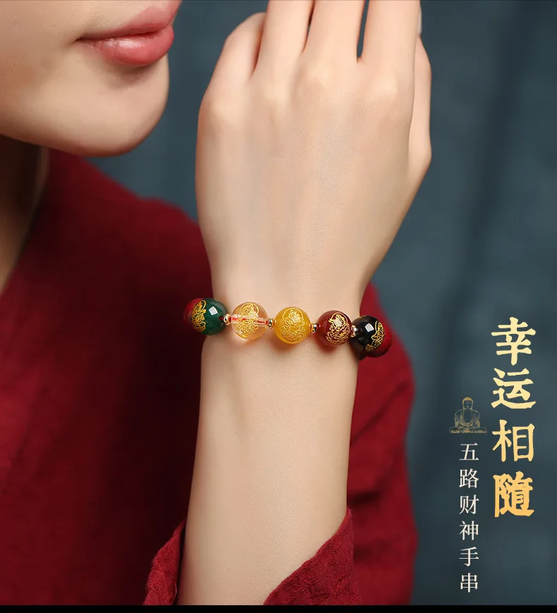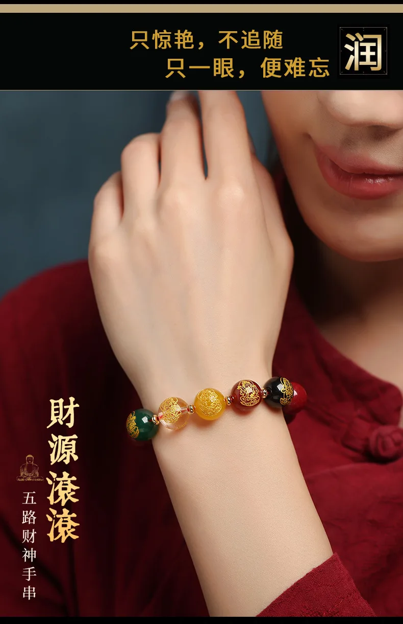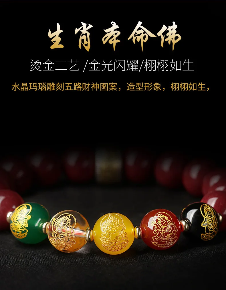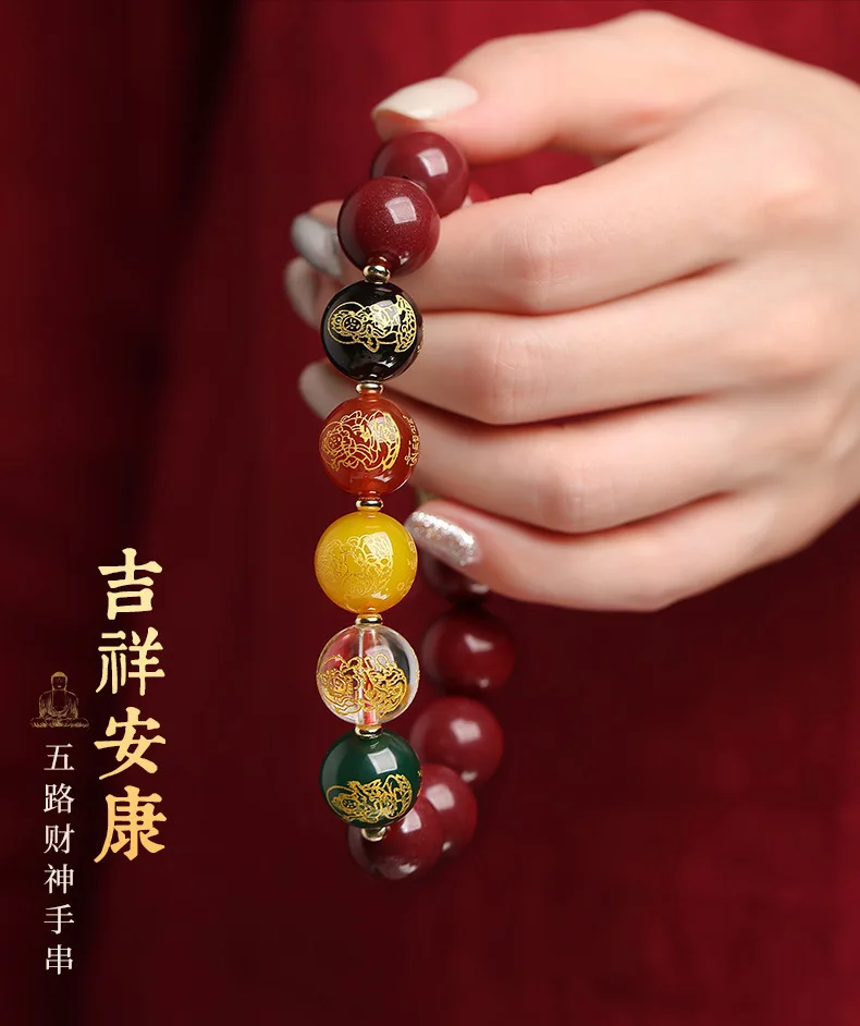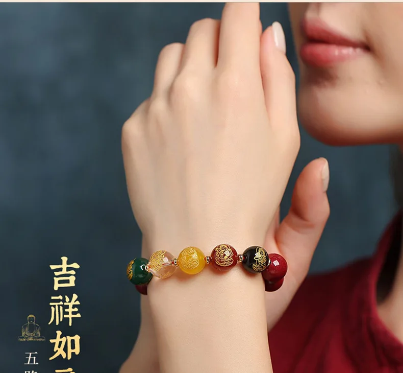 Simplicity S925 Silver Amulet Raw Cinnabar Men's and Women's Bracelet Five Way